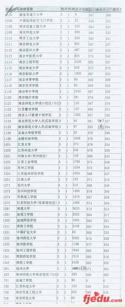 江苏:2007高考本二批次各院校投档线