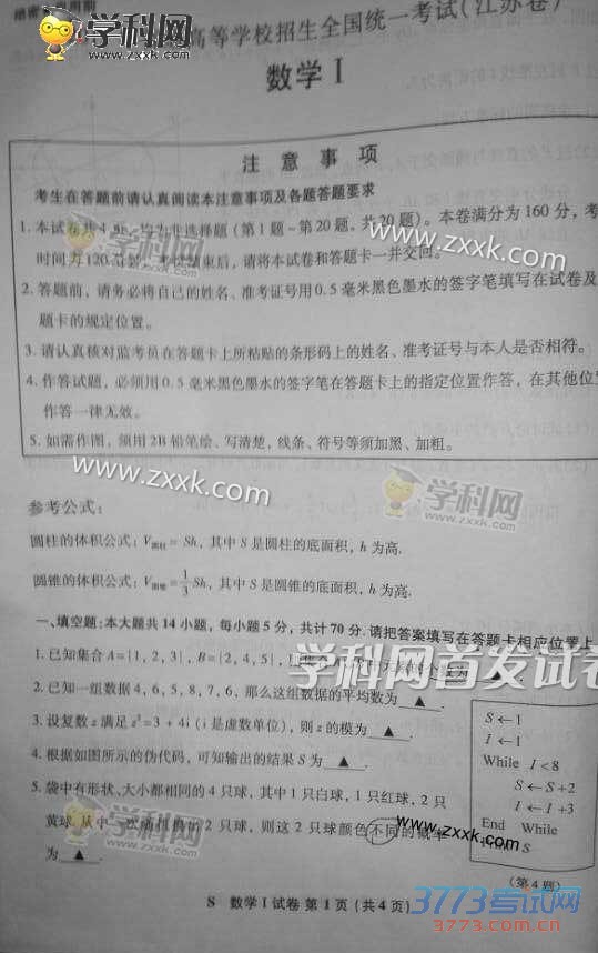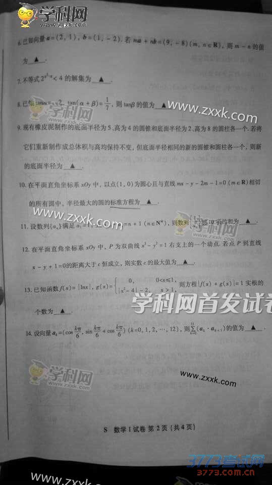 2015年普通高等学校招生全国统一考试—理科数学(江苏卷)【图片版】