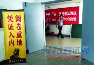 “向高考阅卷老师致以崇高的敬意!”昨天下午,南师大随园校区的计算机科学与技术学院门前,已经挂上了鲜红的横幅,门厅里摆着“阅卷重地,凭证入内”的指示牌。