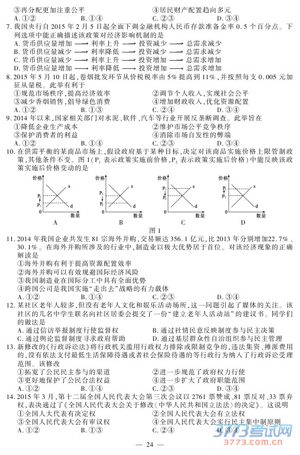 [组图]2015江苏高考政治试题及答案发布