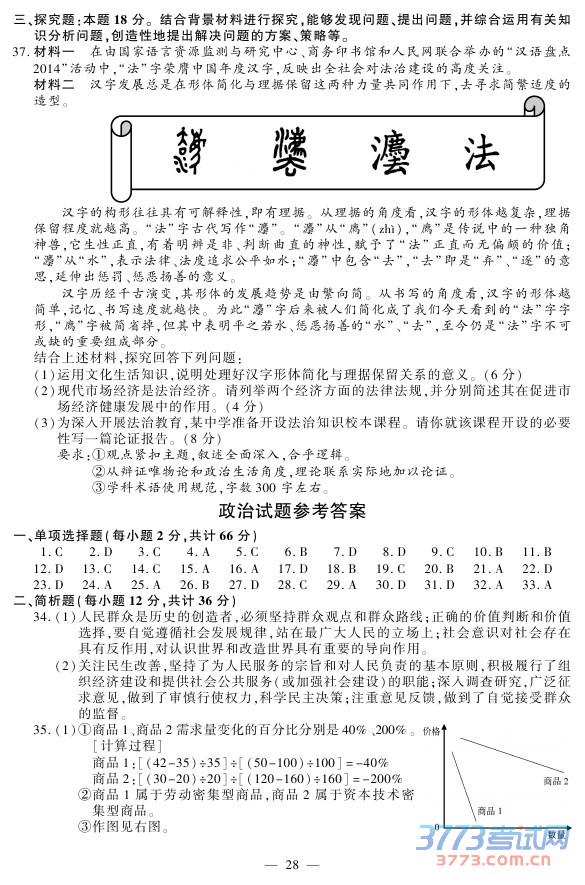 [组图]2015江苏高考政治试题及答案发布