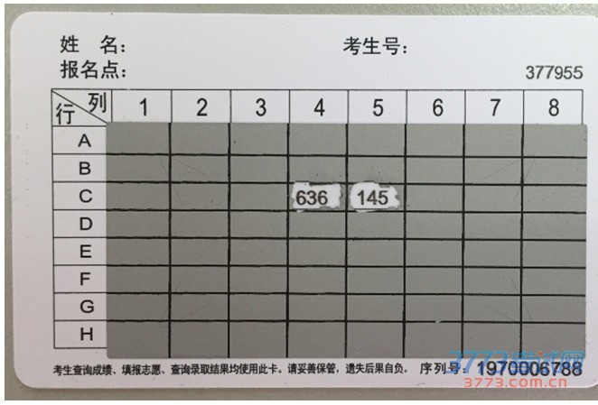 10、考生填报志愿时,需使用如下的动态口令卡,方能提交志愿。