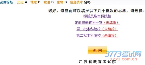 7、系统根据考生的报考信息,必测等级,选测等级和特征分进行判断,显示该考生可以填报的批次。