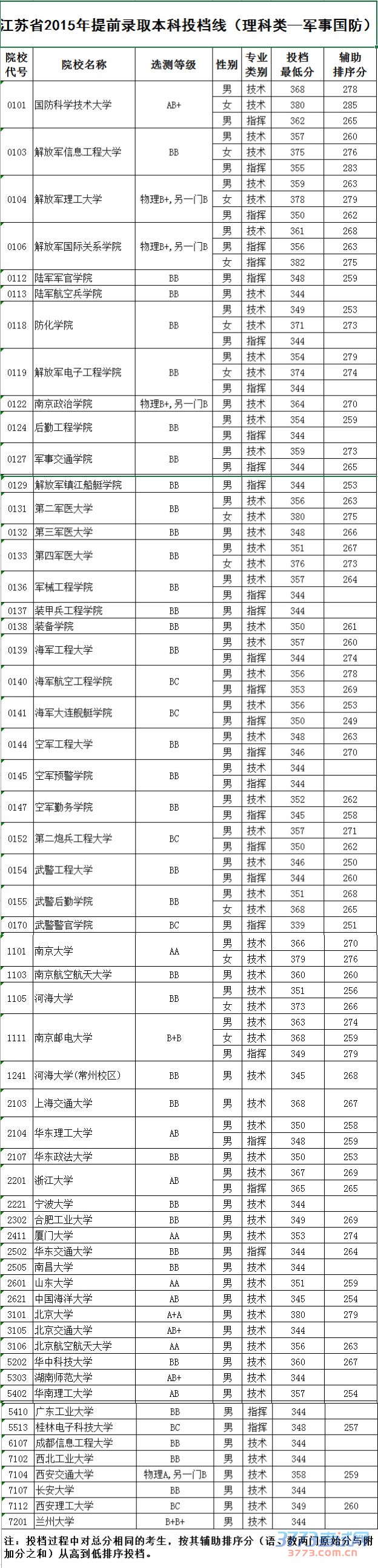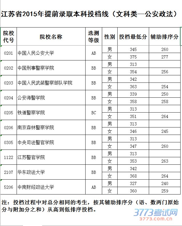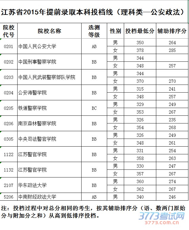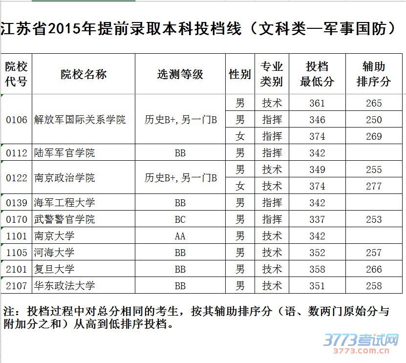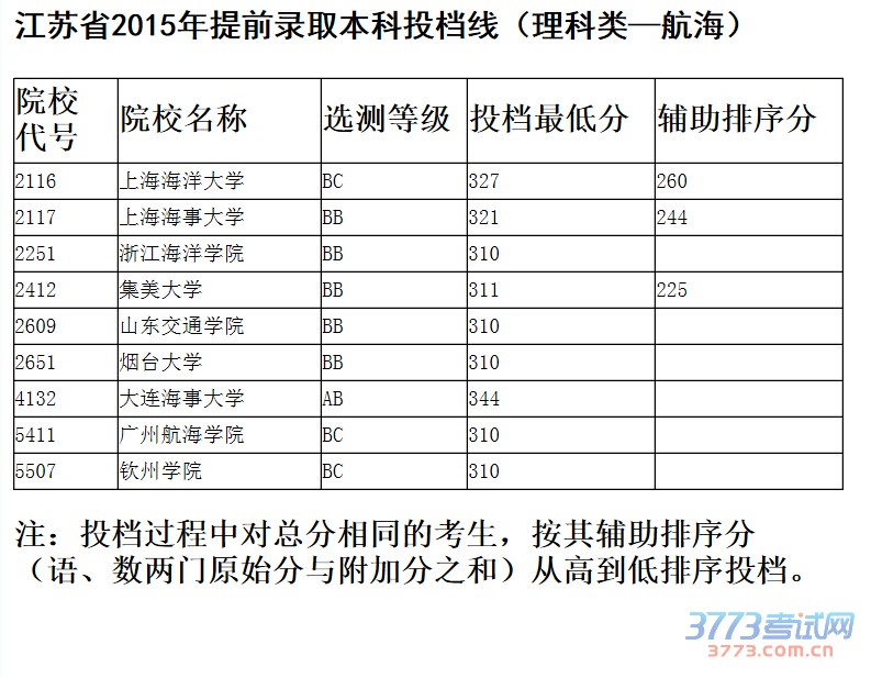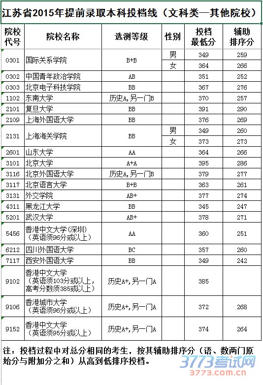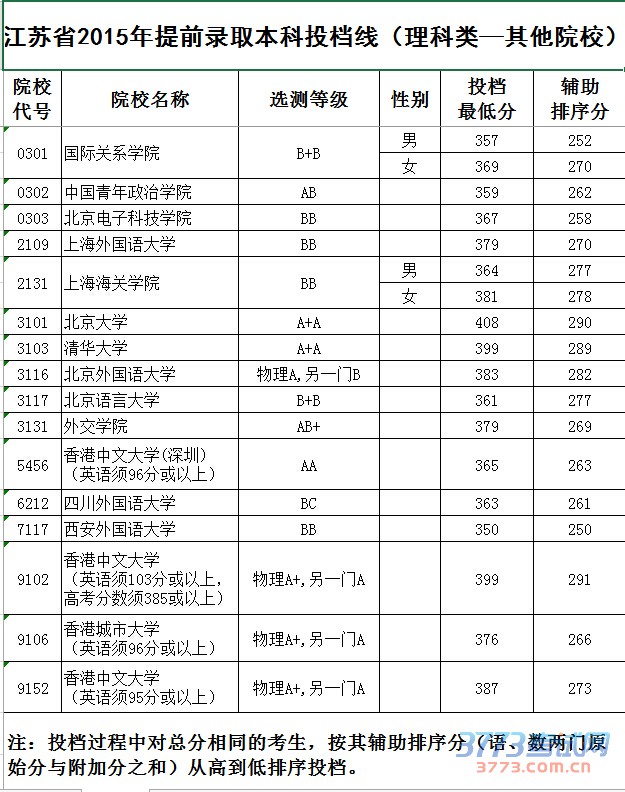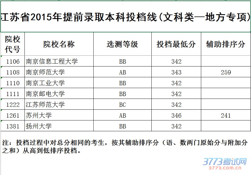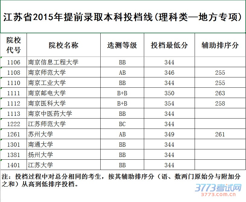 [组图]2015江苏高考提前批本科院校投档线发布