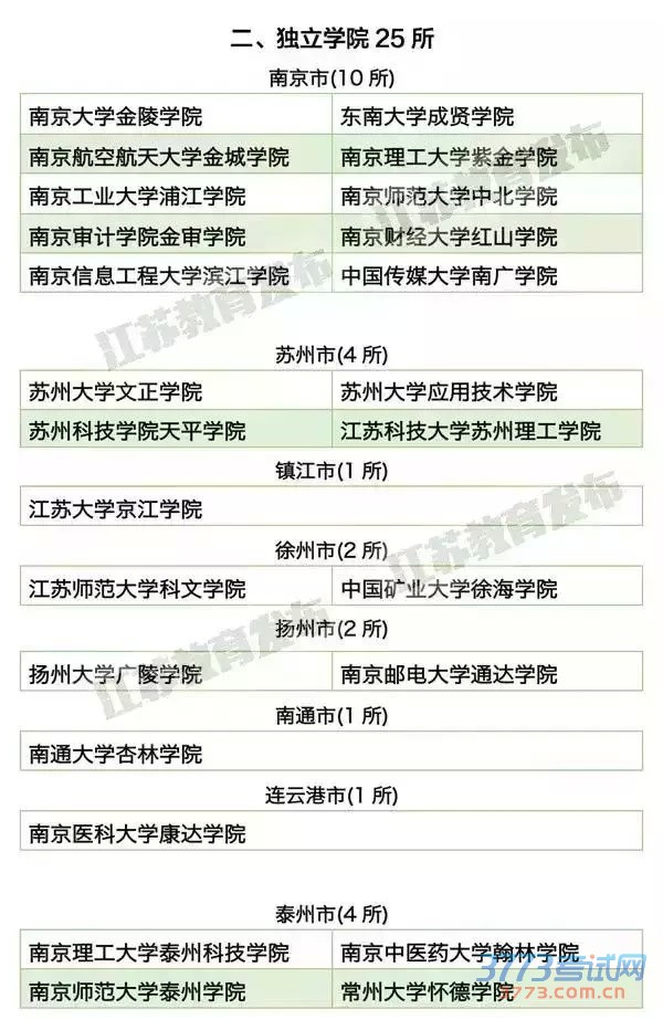 [组图]权威发布2015江苏普通高校及独立学院名单