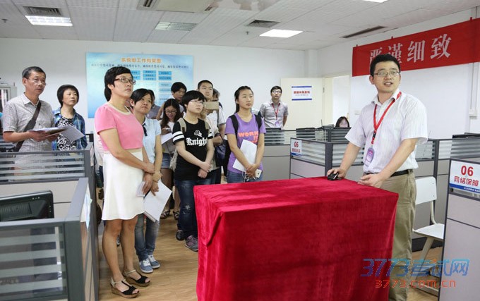 考生、家长代表听取系统数据组工作人员介绍网上录取流程