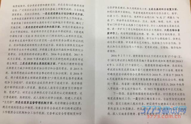 教育部明确江苏省启动高考综合改革的时间为2018年,并要求于2018年6月底前将高考综合改革方案报教育部备案后向社会公布。根据这一要求,江苏省新一轮高考综合改革方案应该是从2018年秋季入学的高一新生起开始启用,在2021年普通高考中正式实施。