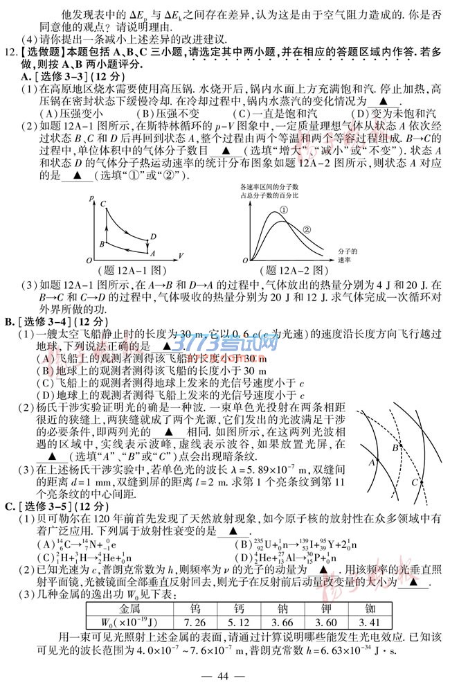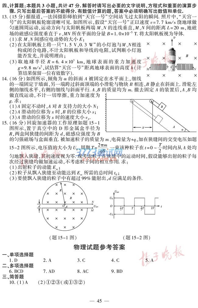 [组图]2016江苏高考物理试题及答案发布