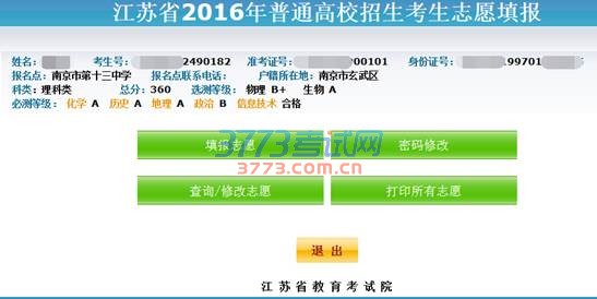 江苏省2016年普通高校招生考生网上志愿填报操作说明