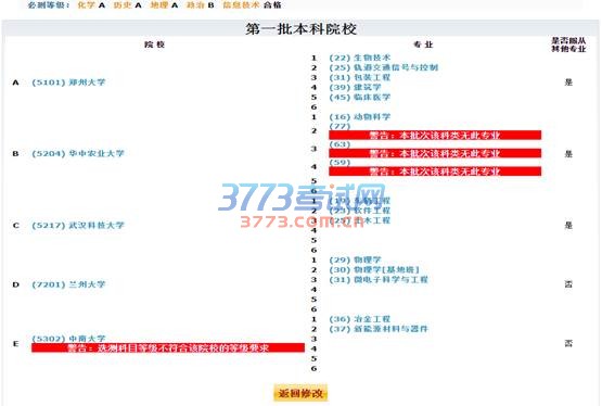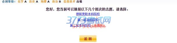 7、系统根据考生的报考信息,必测等级,选测等级和特征分进行判断,显示该考生可以填报的批次。