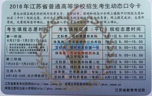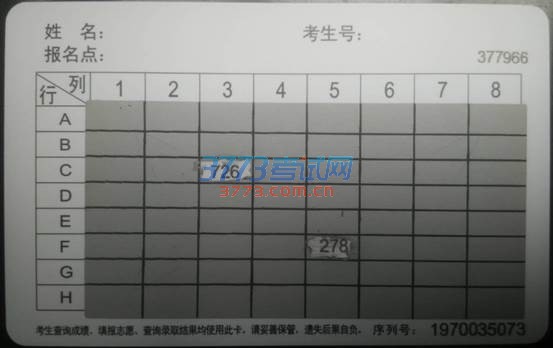 10、考生填报志愿时,需使用如下的动态口令卡,方能提交志愿。