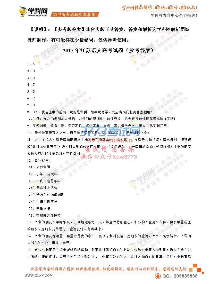2017年普通高等学校招生全国统一考试(江苏卷)
