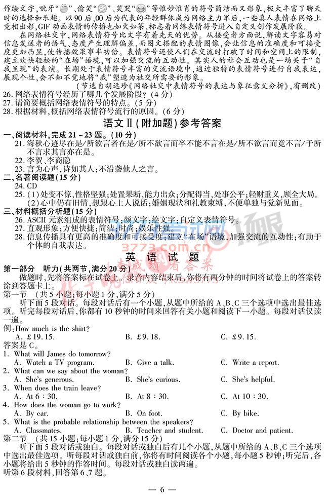 推荐专题 天津 上海 北京 英语四六级查分 浙江音乐学院 云南艺术学院 甘肃省教育考试院 吉林省教育考试院 湖北省教育考试院 河南招生考试信息网 黑龙江省招生考试院 初二会考 中考志愿填报 异地中考 河南高考志愿 重庆高考志愿 西藏高考志愿 贵州高考志愿 云南高考志愿 四川高考志愿 海南高考志愿 广西高考志愿 广东高考志愿 江西高考志愿 武汉大学 四川大学 电子科技大学 西南交通大学 山东 辽宁 吉林 重庆 湖南高考志愿 湖北高考志愿 福建高考志愿 广西艺术学院 新疆艺术学院 浙江高考志愿 上海高考志愿 江苏高考志愿 安徽高考志愿 山东高考志愿 陕西高考志愿 中考分数线 中考录取查询 中考查分网 中考作文网 中考试题答案网 山西高考志愿 宁夏高考志愿 青海高考志愿 甘肃高考志愿 新疆高考志愿 河北高考志愿 天津高考志愿 北京高考志愿 内蒙古高考志愿 吉林高考志愿 辽宁高考志愿 黑龙江高考志愿 福建高职招考 湖南大学 中南大学 山西 综合评价录取 高考专项计划 陕西 河北 河南 华南理工大学 中山大学 西安美术学院 西安音乐学院 湖北 厦门大学 湖南 重庆大学美视电影学院 海南 四川美术学院 浙江大学更多专题 移动站 电脑版 专题 3773考试网 琼ICP备12003406号-1 合作qq:
