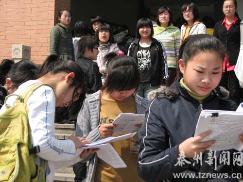“试卷总体感觉有点难,估计拿A的希望不是很大。”省泰州中学高二政史班一名学生说,8日上午物理试卷的最后几道题目有点棘手,感觉跟平时复习的内容相比难度“超高”。与他想法相似的,还有昨天下午从历史考场走出来的考生。