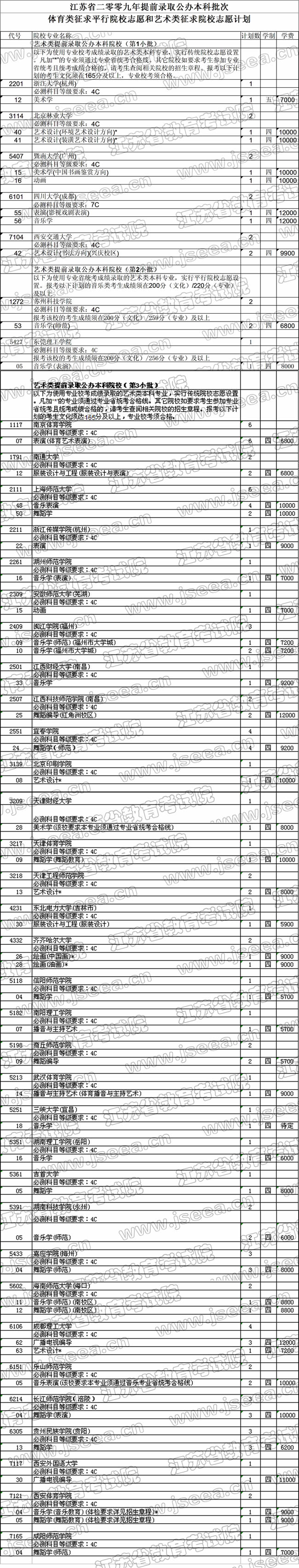 [组图]2009年江苏省体育艺术类提前录取公办本科征求平行志愿计划