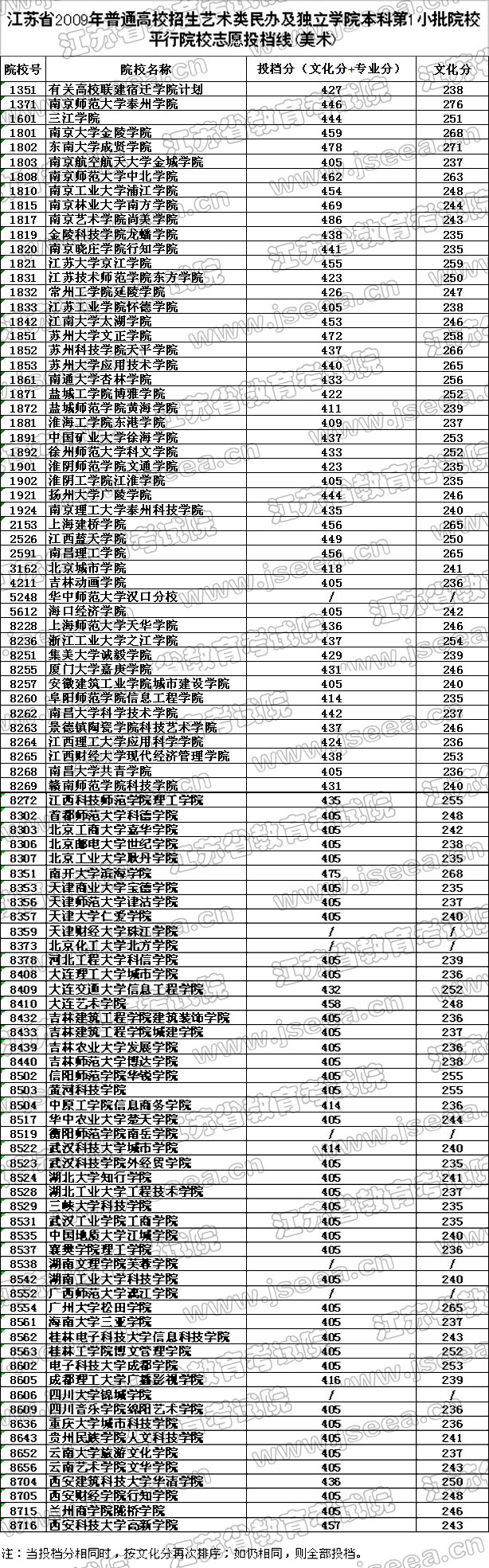 [图文]江苏省2009年艺术类民办及本科第1小批投档线(美术)