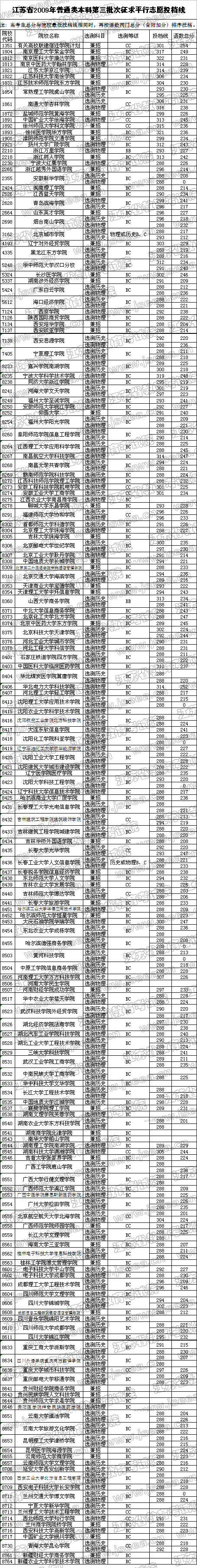 [图文]2009年江苏高考本三批次征求平行志愿投档线