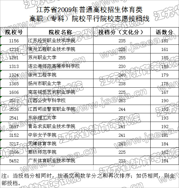 [图文]2009年江苏高考体育类高职专科院校投档分数线