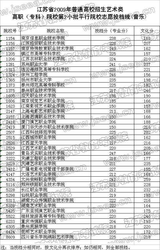 [图文]2009年江苏高考音乐专科院校第2小批平行院校志愿投档分