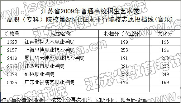 [图文]江苏省艺术类高职(专科)第2小批征求平行院校志愿投档线