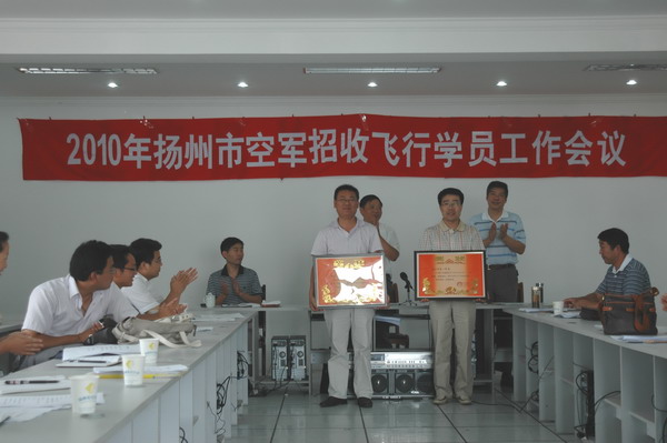 8月28日,扬州市隆重召开2010年空军招收飞行学员工作会议。会议总结了该市2009年招飞工作,对涌现出来的五个先进单位进行了表彰,对2010年招飞工作进行了部署。各县(市、区)招办及市直学校近四十人参加了会议,市教育局党委副书记、副局长陆纪坤出席会议并作了重要讲话。会上,印发了扬教考[2009]31号《关于做好全市2010年空军招飞工作的若干意见》并就如何做好招飞各环节工作组织了经验交流。会议要求全市2010年招飞工作做到:一、要提高认识,加强领导,各地、各校要将招飞工作作为一项政治任务来抓;二、要广泛宣传,深入发动,在全市上下掀起踊跃报名,争当飞行学员的热潮;三、要力争提高“三率”。要面向所有应招青年,尽量提高送检率。在不误淘的前提下,严把“五查”关,各县(市、区)招办在学校“五查”后要组织再次把关,努力提高初检合格率。要狠抓“保苗”、“育苗”工作,努力提高出飞率;四、要认真开展各阶段工作,接受招飞工作年度考核评比;五、各地、各校要将招飞工作同素质教育结合起来,在开展招飞工作的同时,要对学生进行爱国主义和国防知识教育。