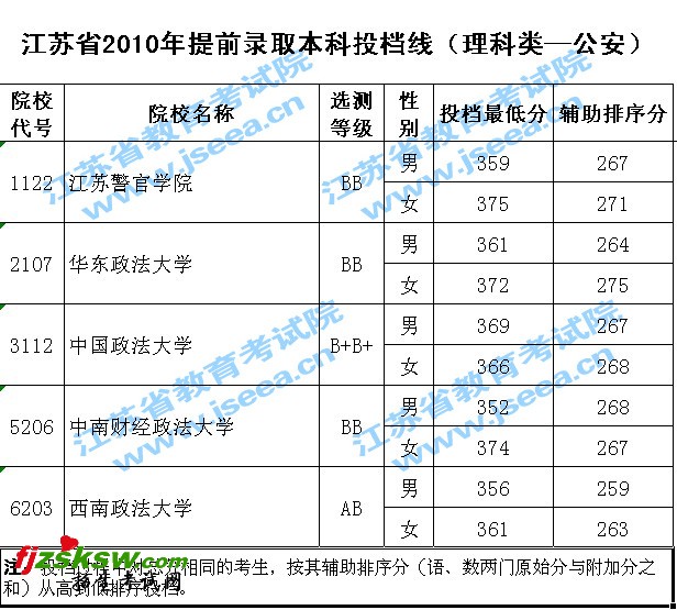 [组图]江苏省2010年提前批公安院校本科投档分数线