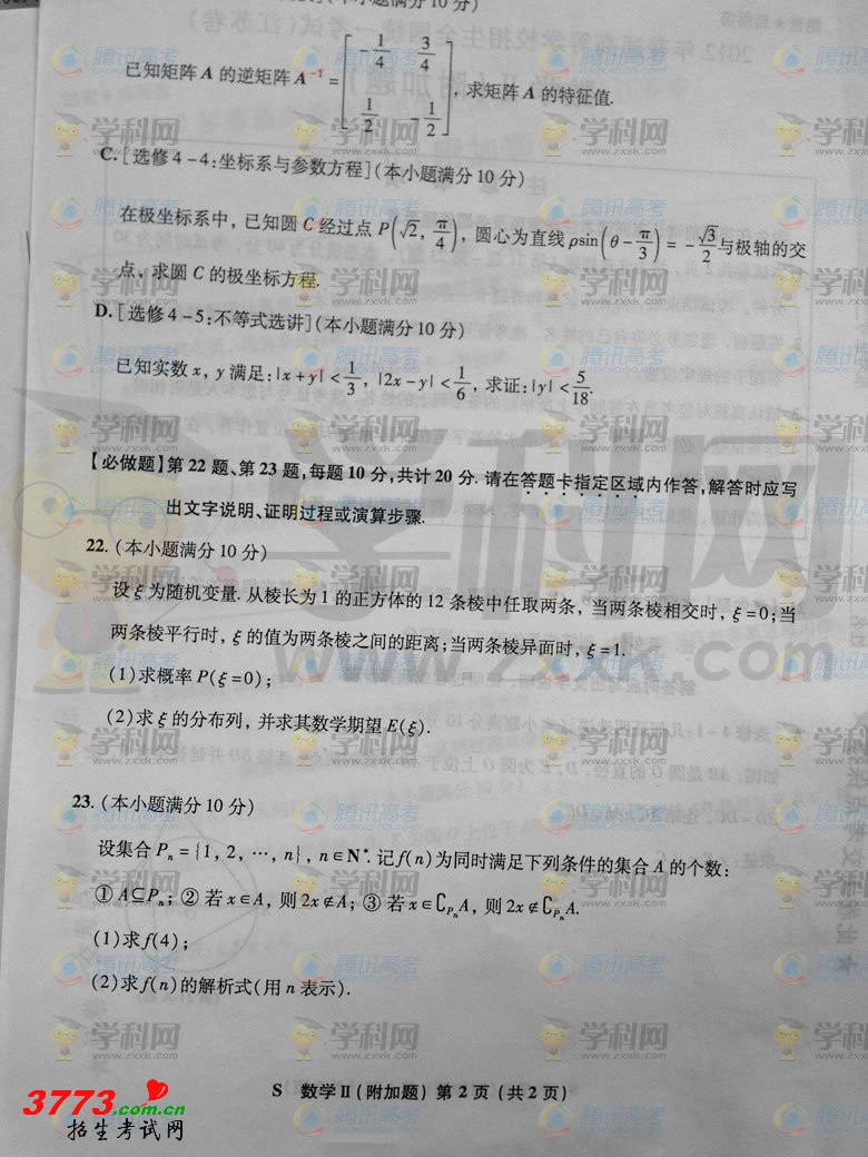 [组图]2012年江苏高考数学试题及答案发布