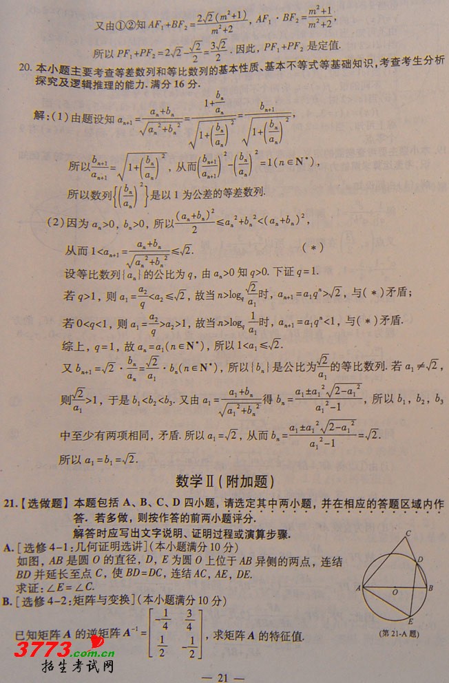 [组图]2012年江苏高考数学试卷及参考答案