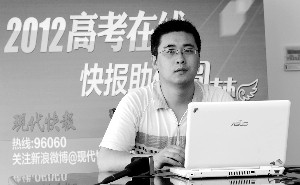昨天,东大招办副主任周明阳与读者微访谈互动 记者 赵杰 摄