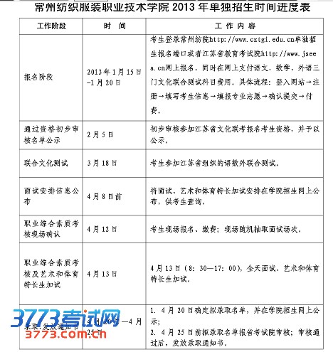 [图文]常州纺织服装职业技术学院2013单独招生时间表
