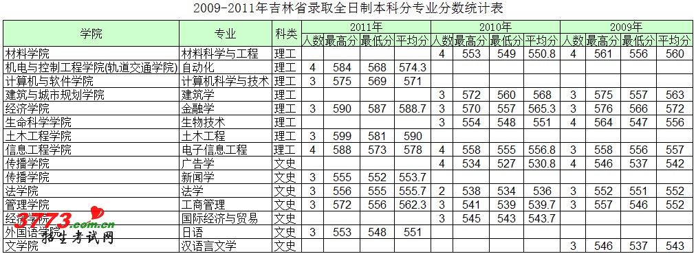 [图文]深圳大学2009年2010年2011年吉林录取分数线
