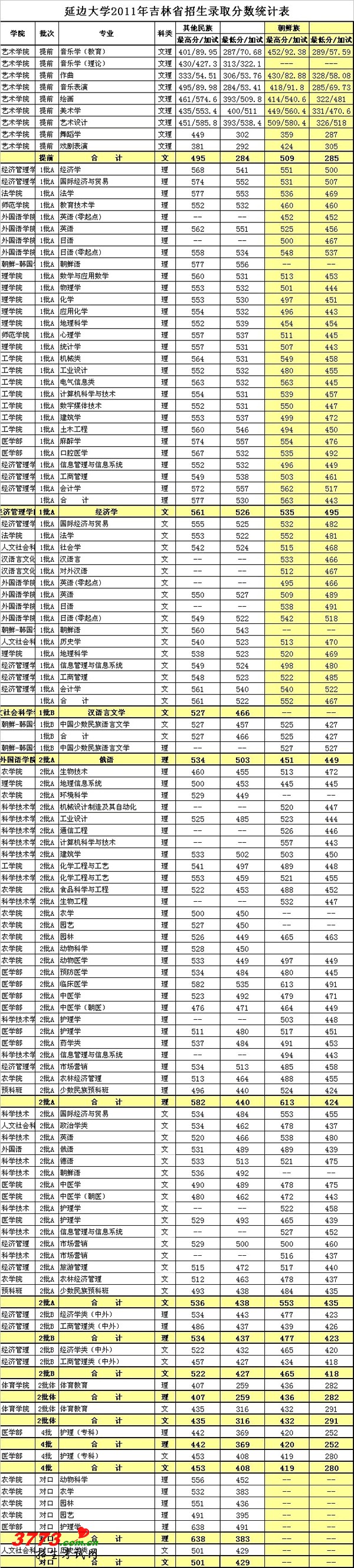 [图文]延边大学2011年吉林省录取分数线