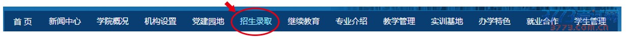1.通过浏览器打开学校网站(http://www.jlcsxy.com/),然后点击导航栏中的【招生录取】栏 目进入招生录取子网站(http://zhaosheng.jlcsxy.com/)如下图所示: