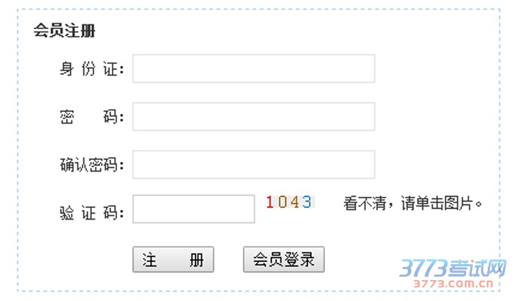3.点击【会员注册】后浏览器会跳转至会员注册页面 (http://zhaosheng.jlcsxy.com/zhuce.asp)如下图,填写相应报考考生身份证号和初始密 码即可以完成会员注册功能。