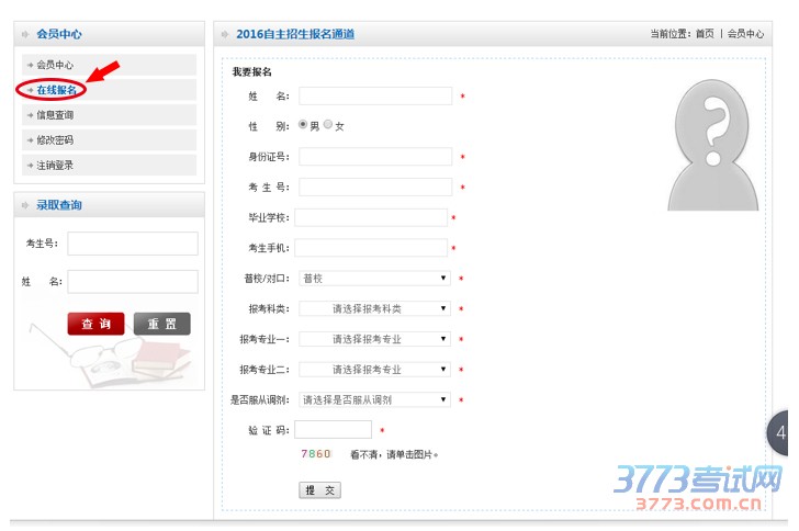 5.会员登陆成功后,请点击【在线报名】功能如下图,填写考生报考需要提交的信息并点击【提交】完成报名操作即可。