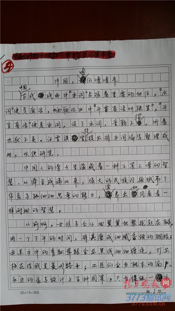[组图]2015江苏高考满分作文-中国咱们慢慢来