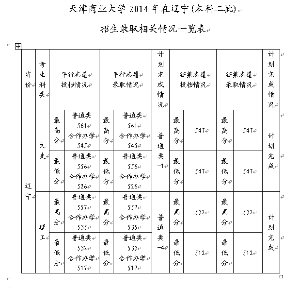 [图文]2014天津商业大学辽宁二本录取分数线情况