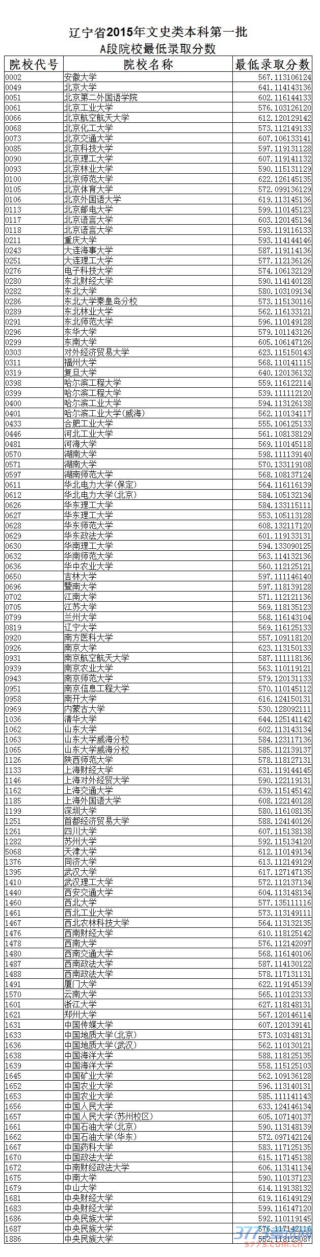 [组图]2015辽宁高考一本A院校录取最低分数线公布