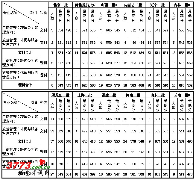 [图文]东北财经大学萨里国际学院中外合作办学专业2011年录取分数线