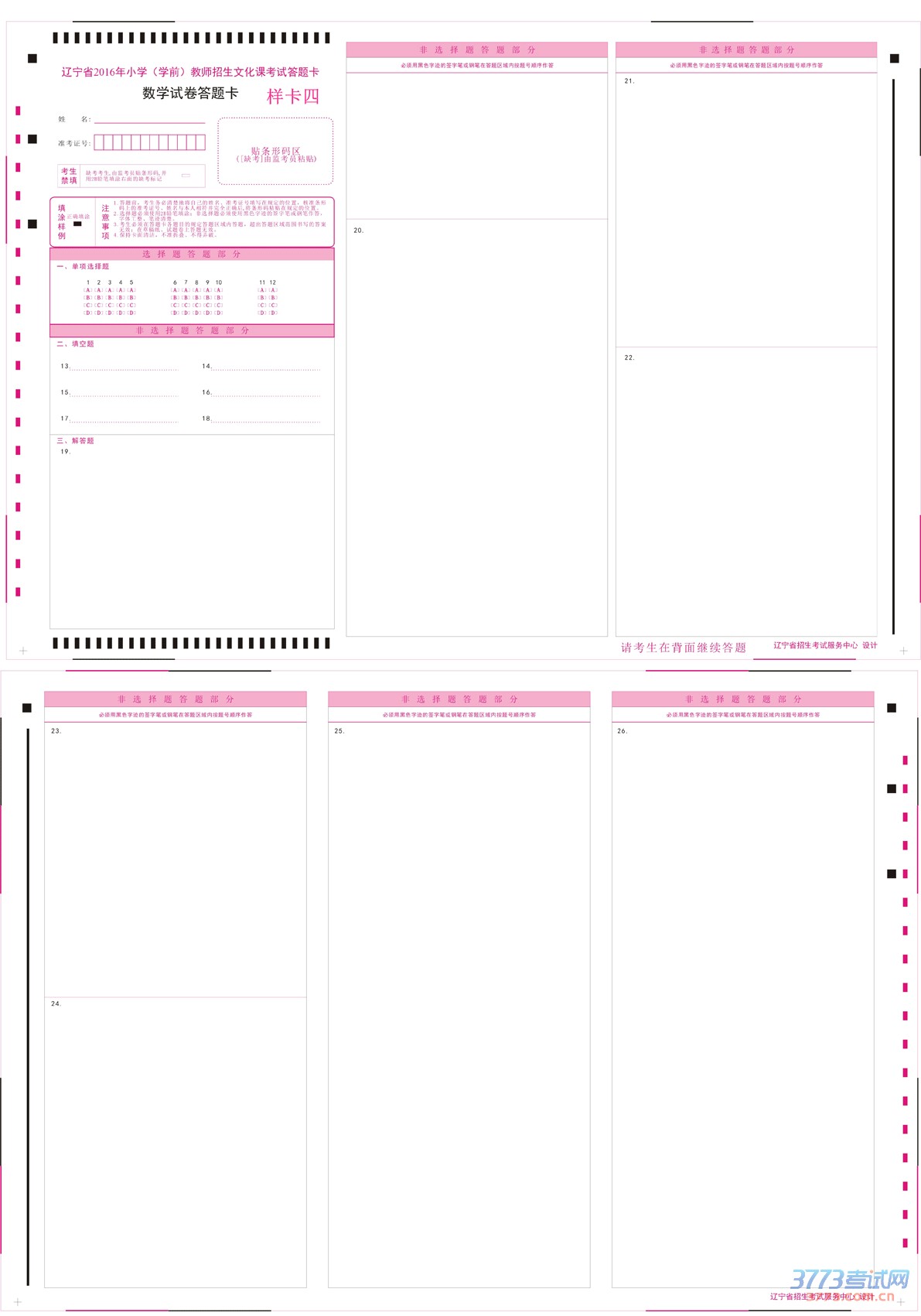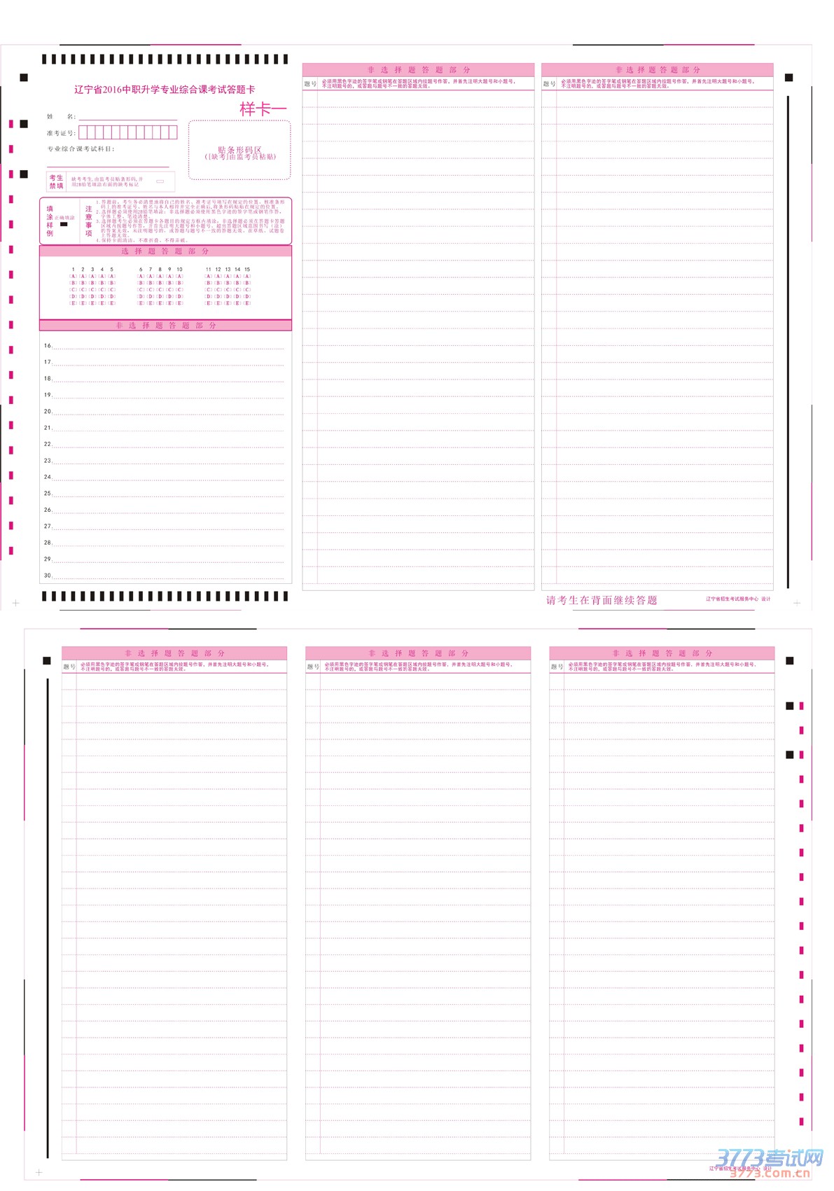 [组图]2016辽宁中职升学考试和小学教师招生考试答题卡作答