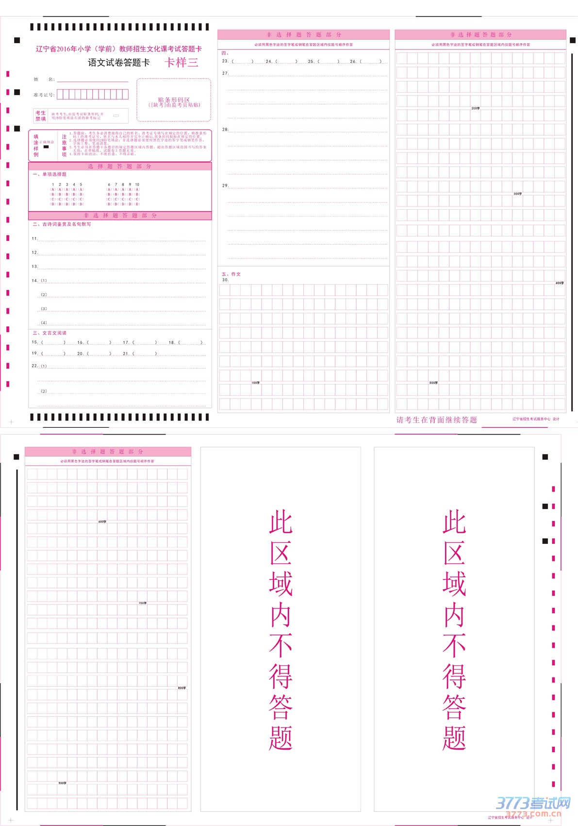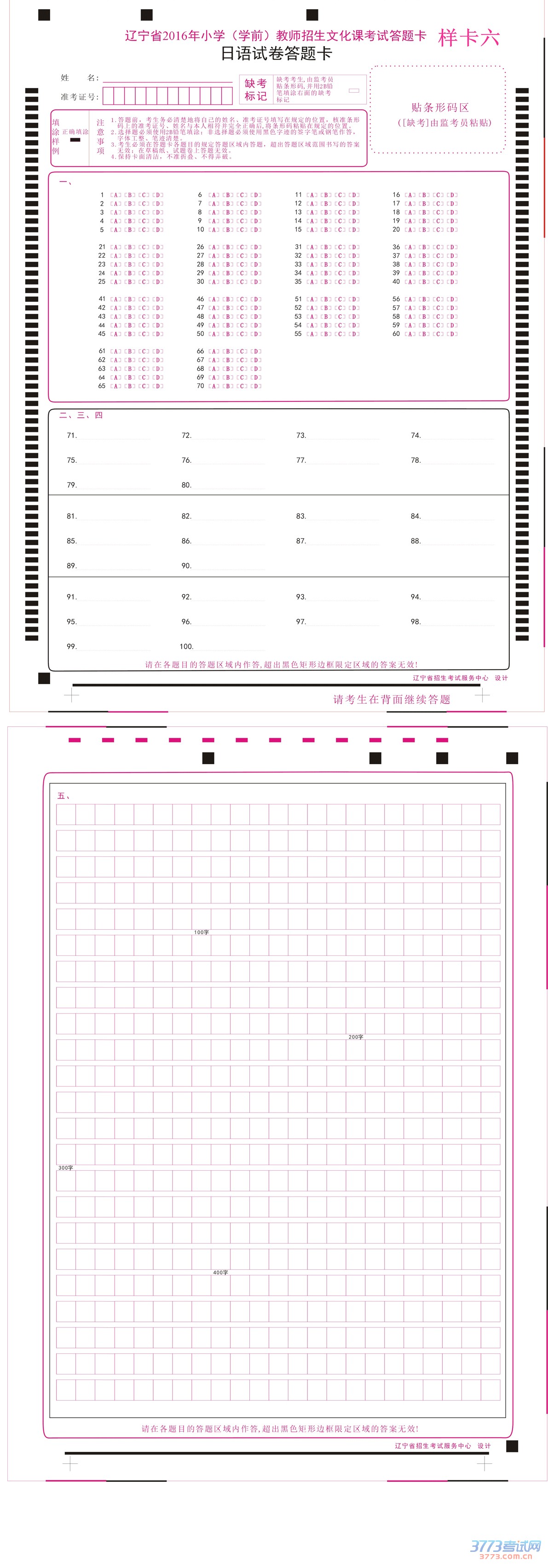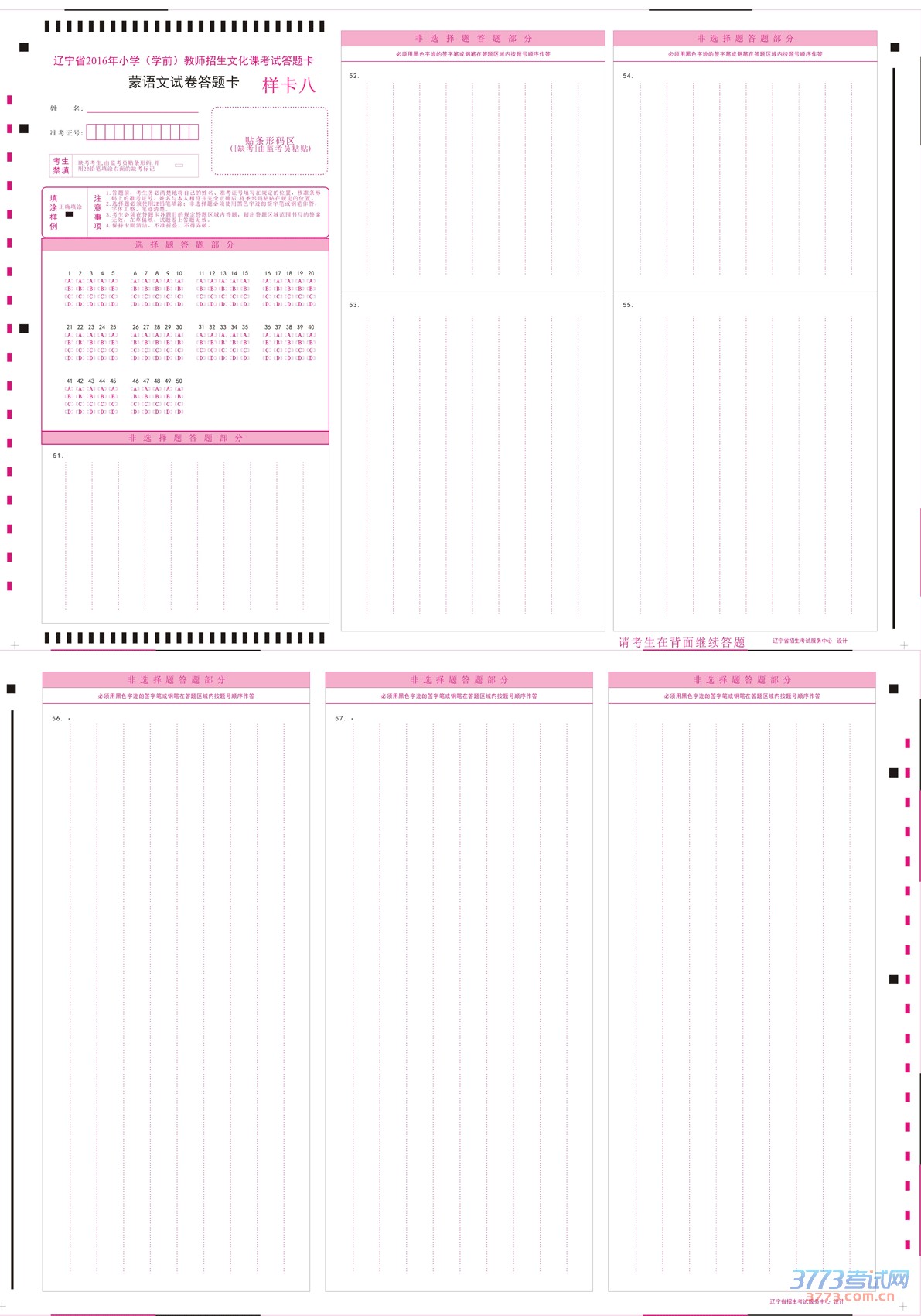 样卡六:用于小学(学前)教师招生日语学科考试。(点击查看) 样卡七:用于小学(学前)教师招生朝语文学科考试。(点击查看)