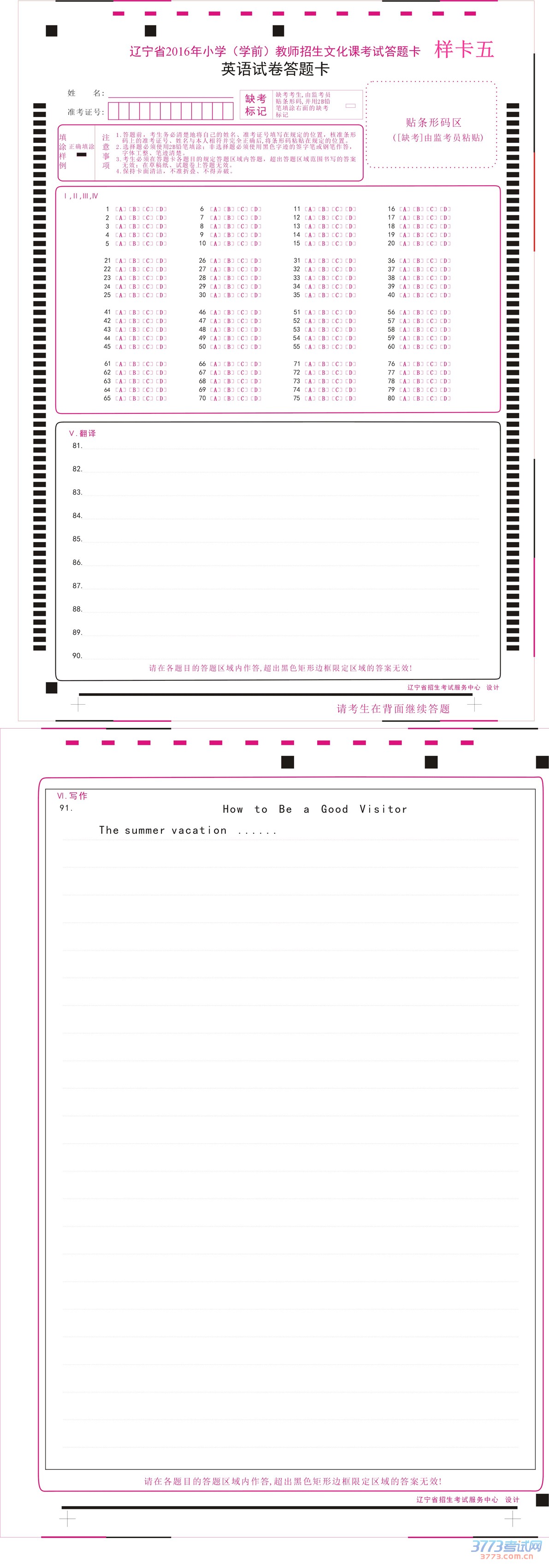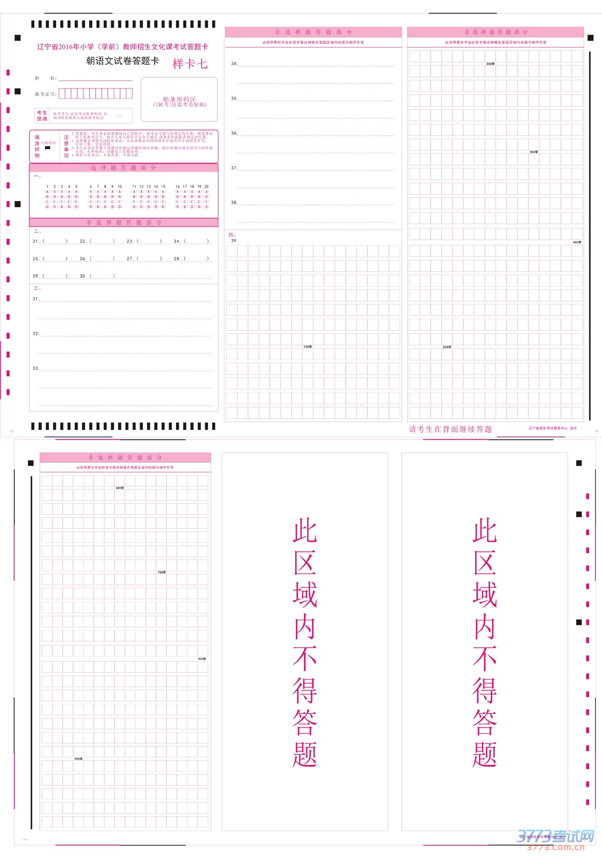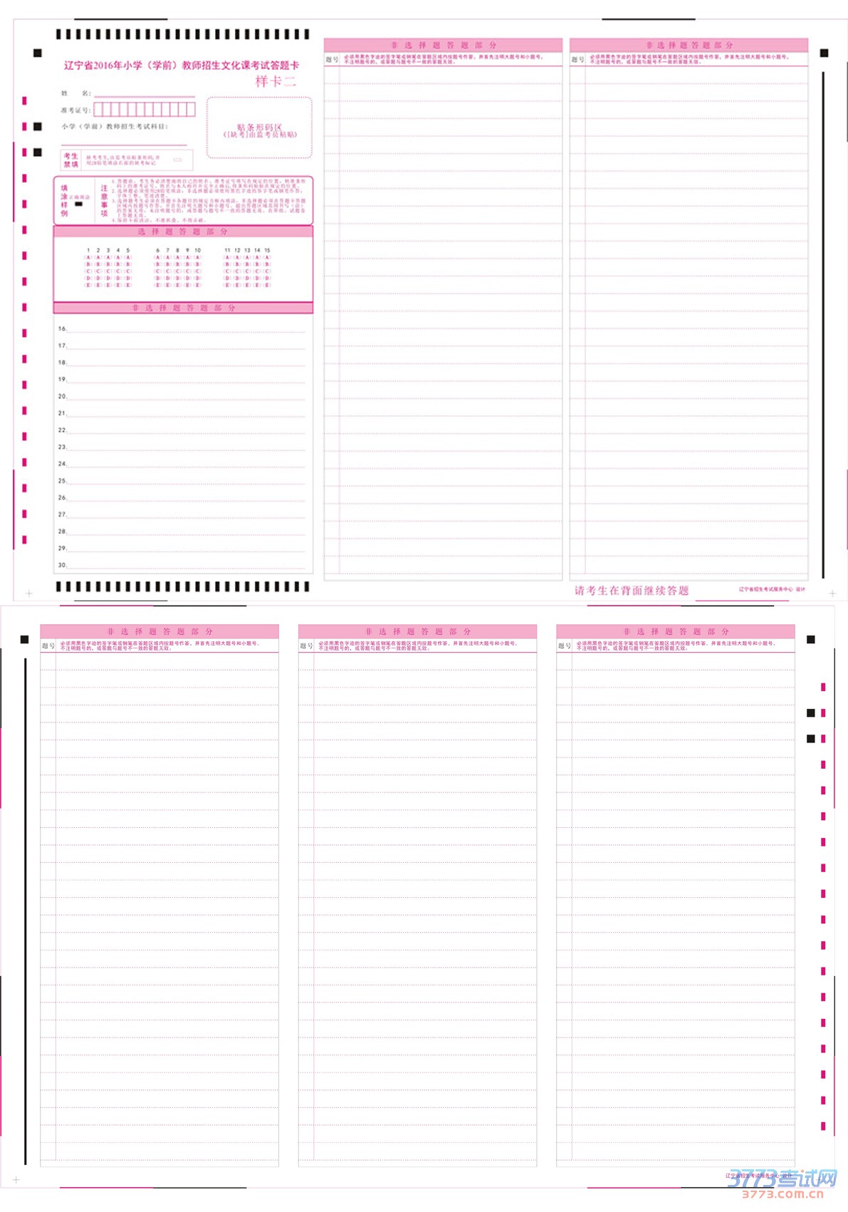 样卡六:用于小学(学前)教师招生日语学科考试。(点击查看) 样卡七:用于小学(学前)教师招生朝语文学科考试。(点击查看)