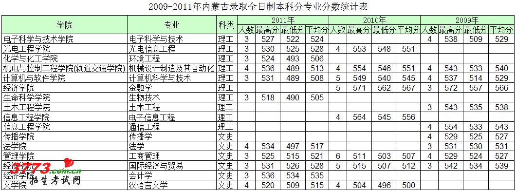 [图文]深圳大学2009-2011年内蒙古分专业录取分数线