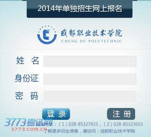 成都职业技术学院2014年单独招生网上报名
