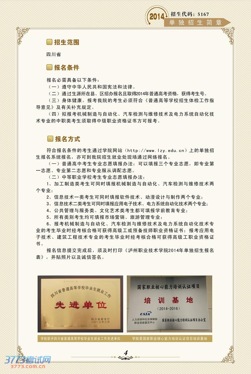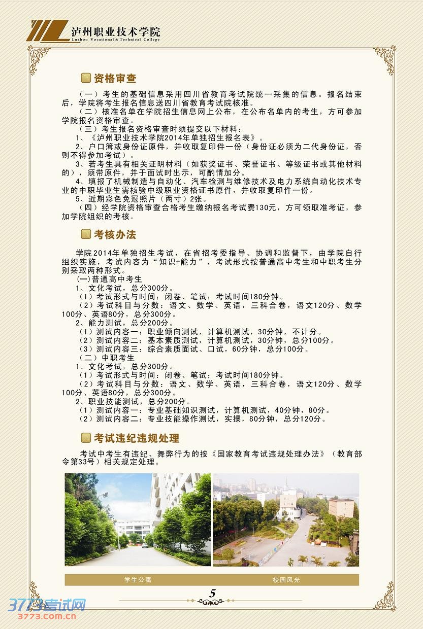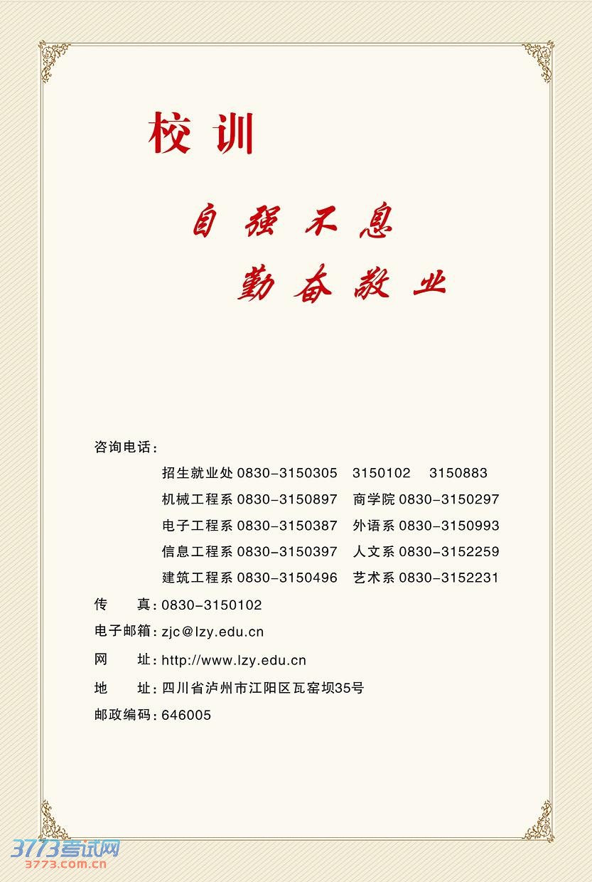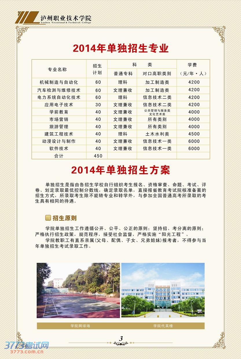 相关文章 泸州职业技术学院2015年单独招生考试简章2014泸州职业技术学院录取查询方式入口泸州职业技术学院2014年招生简章泸州职业技术学院2013年单独招生方案2013泸州职业技术学院单独招生报名系统泸州职业技术学院2013年单独招生简章泸州职业技术学院录取分数线查询泸州职业技术学院录取分数线泸州职业技术学院2008年高考招生章程 触屏版 电脑版 3773考试网 琼ICP备12003406号-1