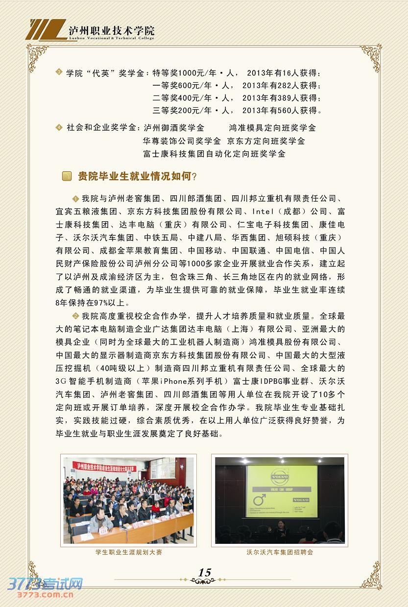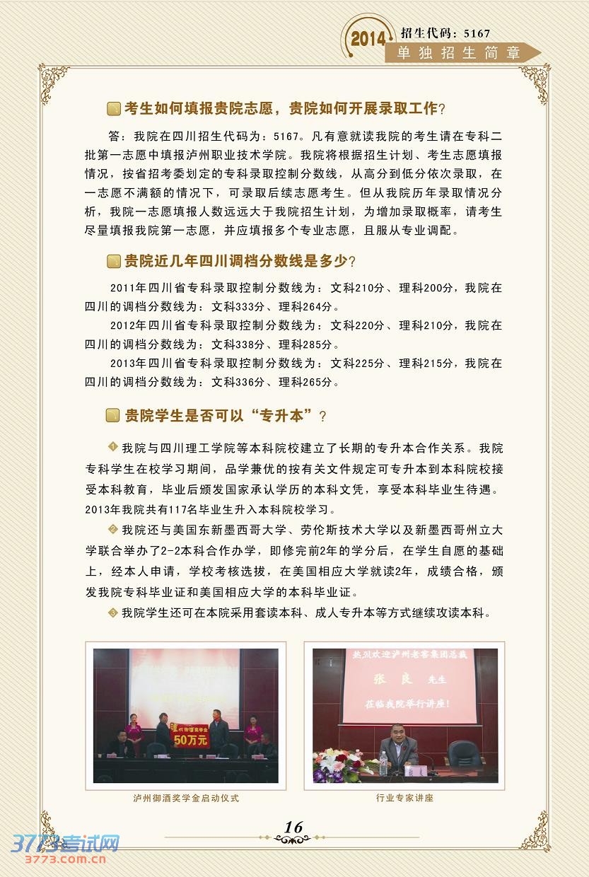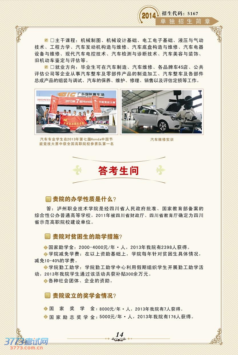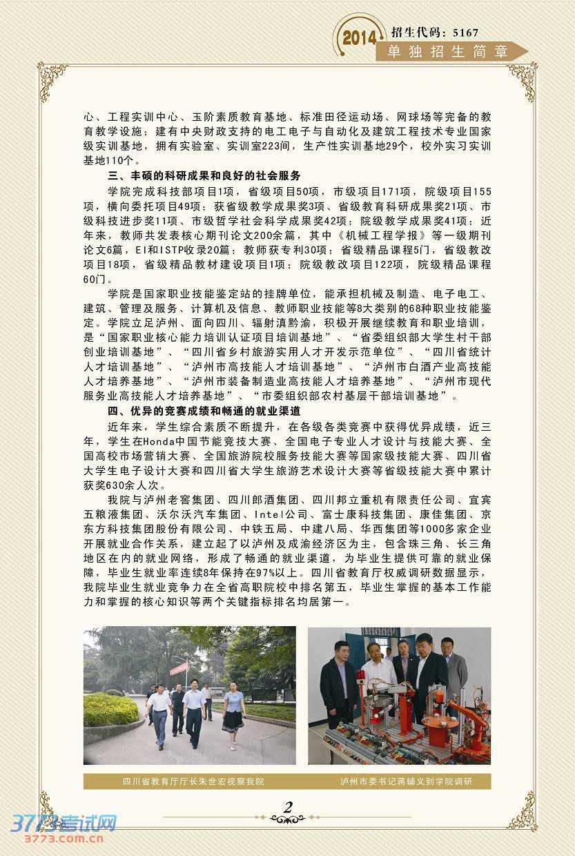 相关文章 泸州职业技术学院2015年单独招生考试简章2014泸州职业技术学院录取查询方式入口泸州职业技术学院2014年招生简章泸州职业技术学院2013年单独招生方案2013泸州职业技术学院单独招生报名系统泸州职业技术学院2013年单独招生简章泸州职业技术学院录取分数线查询泸州职业技术学院录取分数线泸州职业技术学院2008年高考招生章程 触屏版 电脑版 3773考试网 琼ICP备12003406号-1