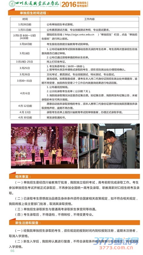 相关文章 2016四川交通职业技术学院单独招生计划2016年四川交通职业技术学院单独招生答考生问四川交通职业技术学院2016年单独招生方案2016年四川交通职业技术学院单招宣传路线预告2015四川交通职业技术学院录取查询方式及分数线四川交通职业技术学院2015年招生简章四川交通职业技术学院2015年面向藏区9+3单独招生2015年四川交通职业技术学院单独招生简章2014四川交通职业技术学院录取查询分数线四川交通职业技术学院2014年招生简章 触屏版 电脑版 3773考试网 琼ICP备12003406号-1
