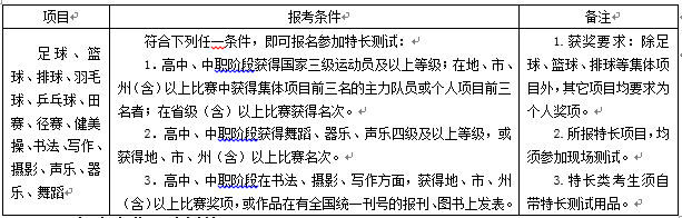 3.特长类:面向在艺体方面具有一定特长,并取得相应专业等级或在相关赛事中获奖的普通高中生、中职生。
