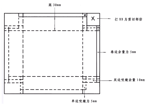 注:图1为手工制作小零件盘的参考图纸,图纸上的尺寸及形状仅为以往考试的样例,形状及尺寸仅作为参考,加工材料为镀锌板材料,放样、划线、咬边、卷边的余量,见图1。