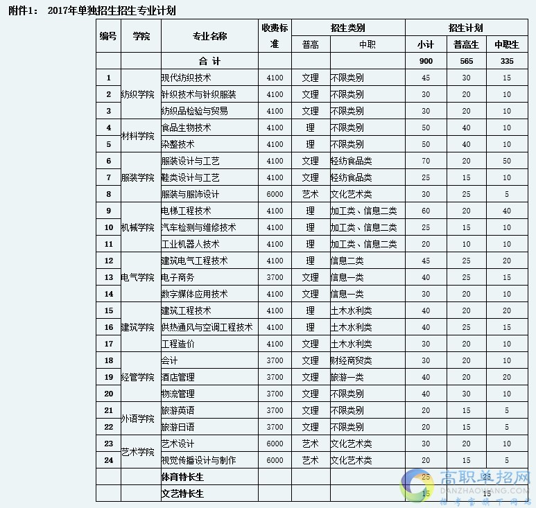 成都纺织高等专科学校作为四川省第一所经国家教育部、财政部两部以“优秀”结论验收通过的国家骨干高职院校。按照四川省2017年高职院校开展单独招生工作统一部署,我校从2011年起已连续6年开展了单独招生工作,2017年我校将继续开展此项工作。为确保今年单独招生工作顺利进行,特制定成都纺织高等专科学校2017年单独招生考试章程。